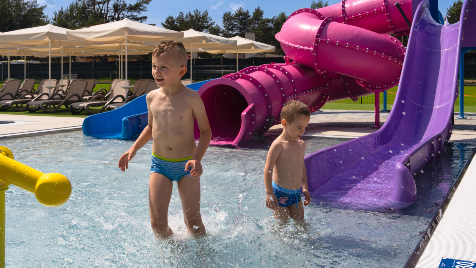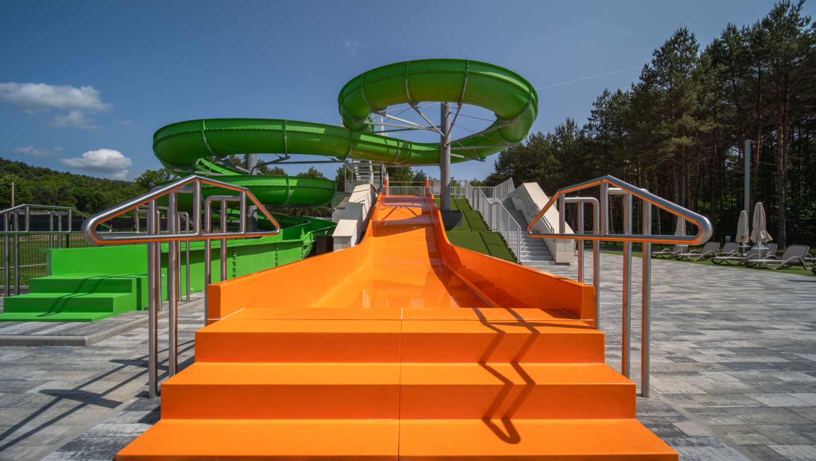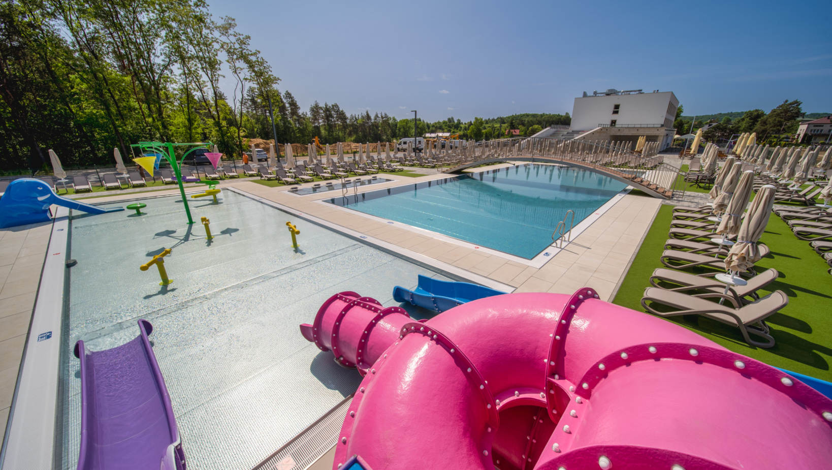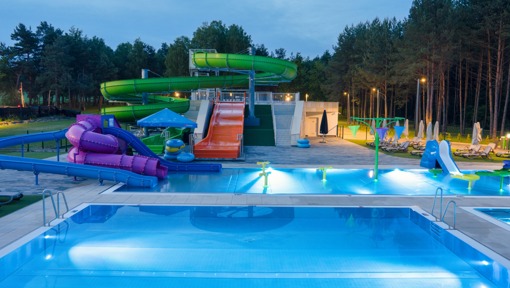 - Dwie duże zjeżdżalnie, rodzinna i pontonowa,