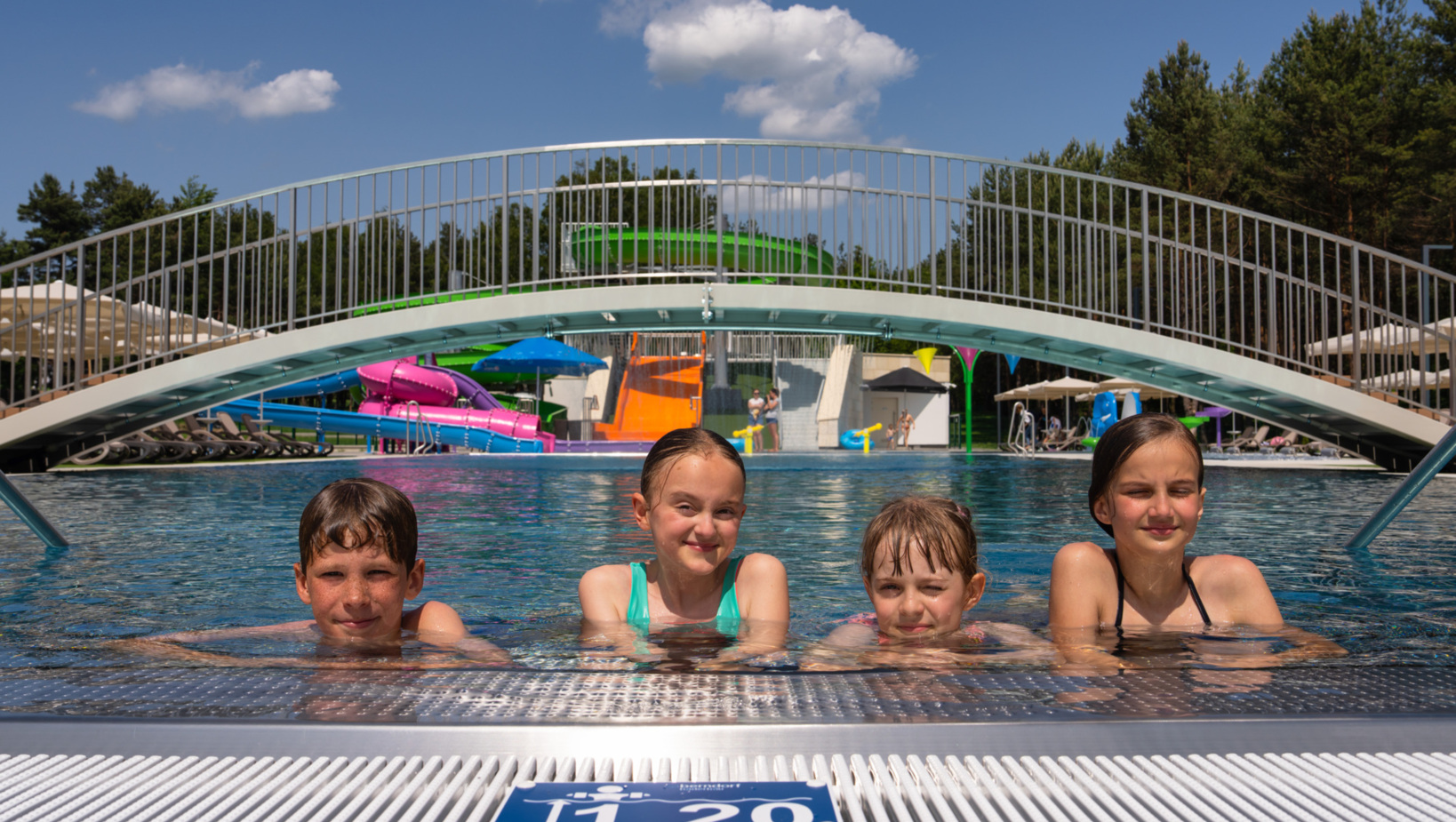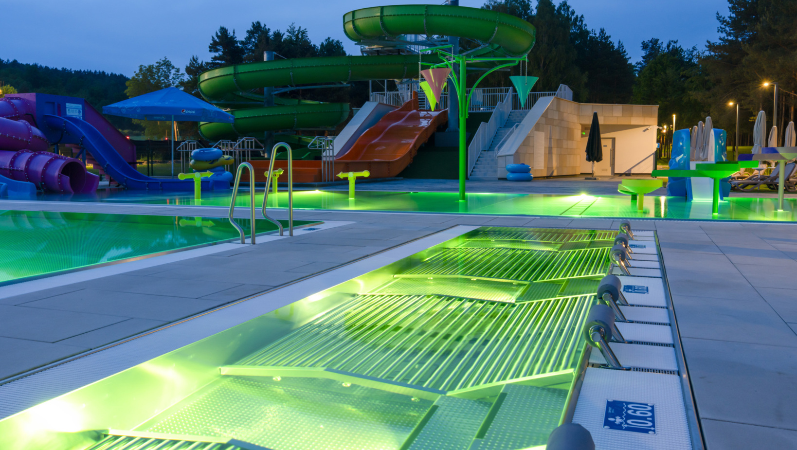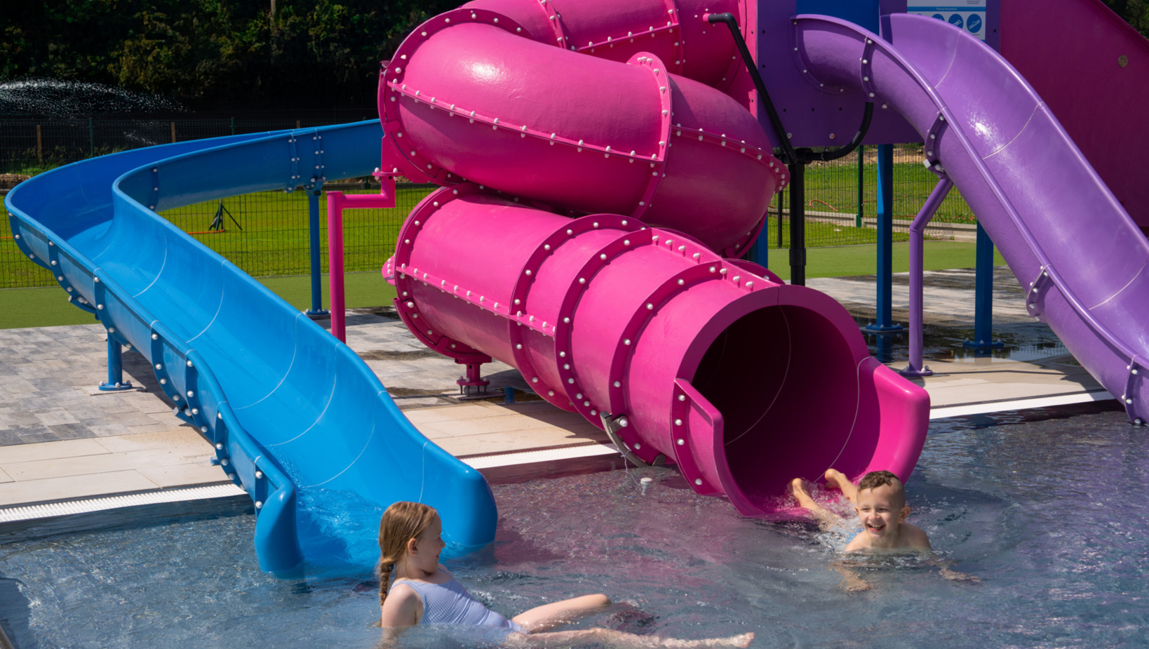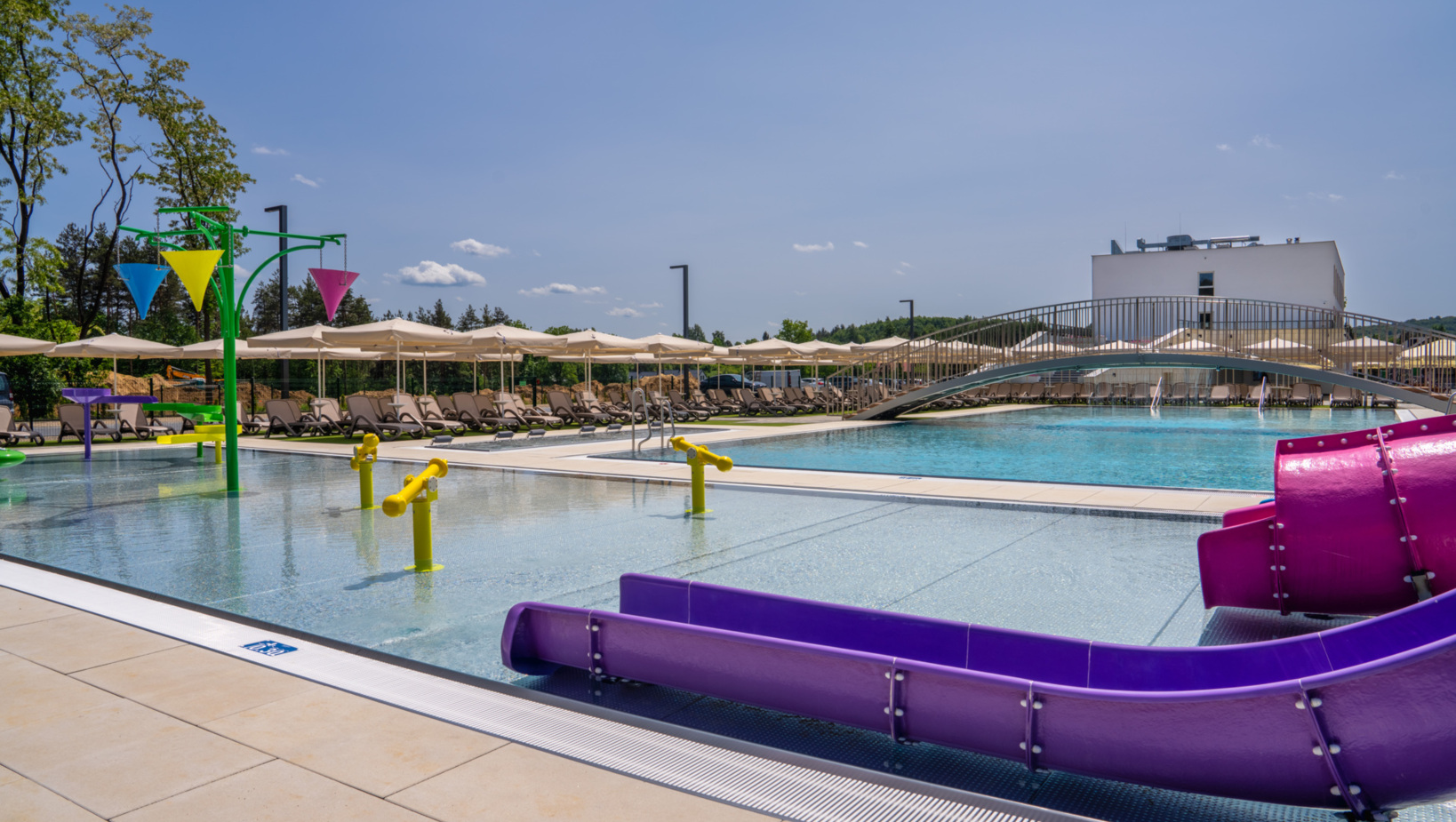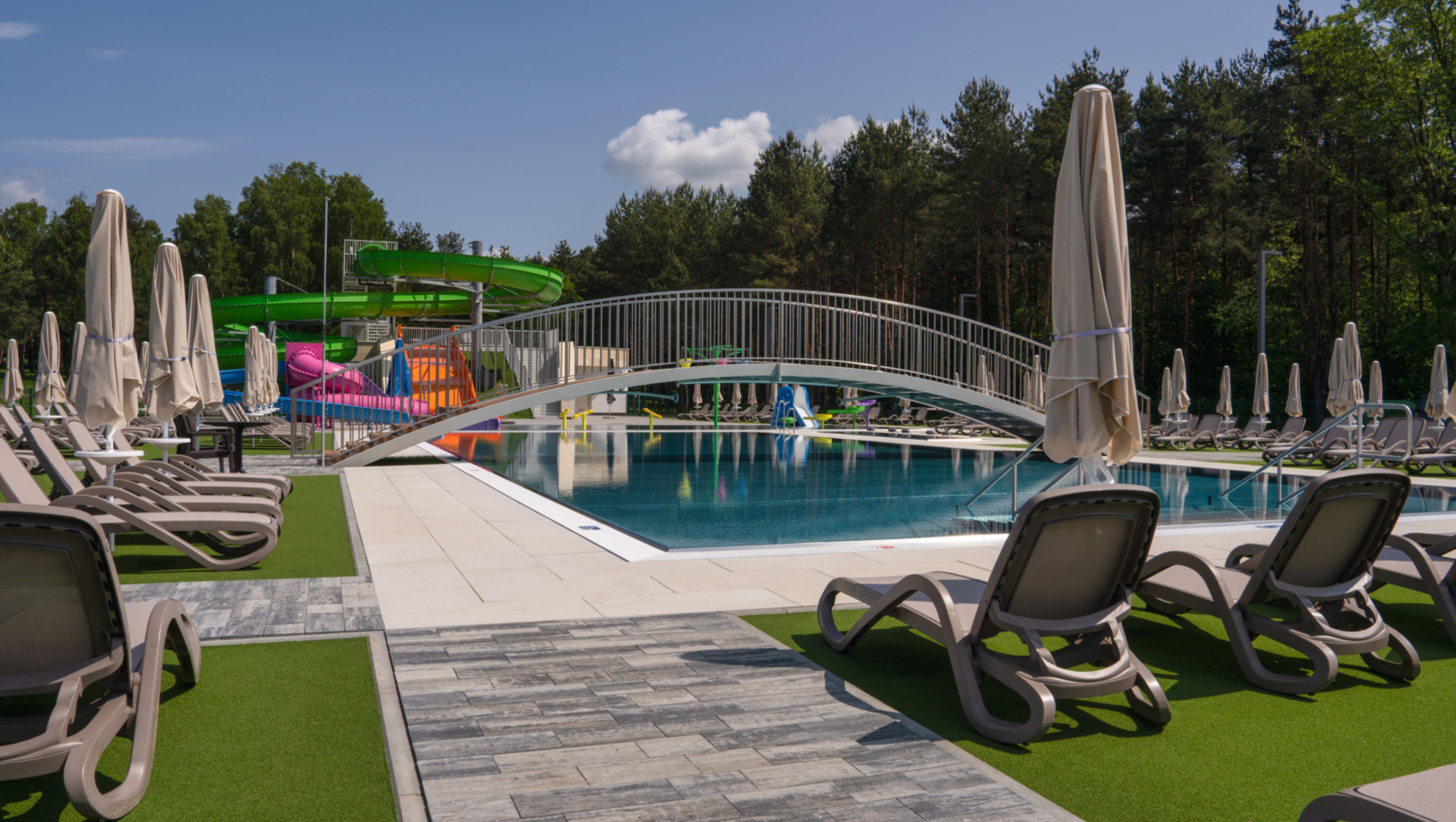 - Dwie duże zjeżdżalnie, rodzinna i pontonowa,