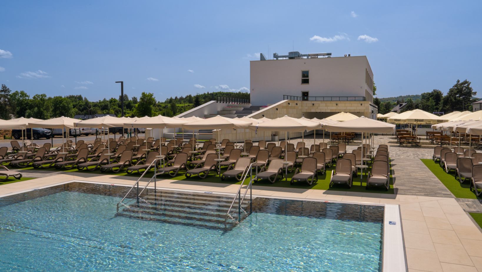 Za budynkiem Osady Zborów rozciąga się aquapark z podgrzewaną wodą o powierzchni 300 m², stworzony jako doskonałe miejsce relaksu i wodnych atrakcji na upalne dni.